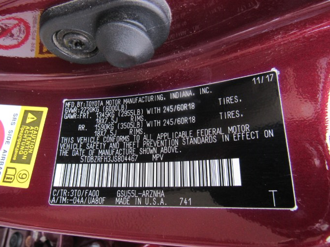 Standard Equipments on 2018 Toyota Highlander LE in Worcester, MA